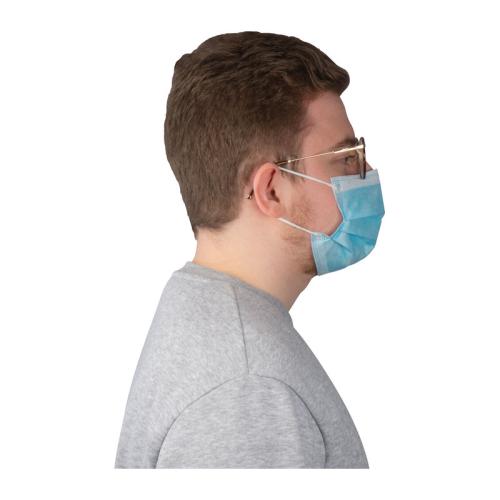 Disposable face mask (mouth-nose protection) 3-layer with elastic band holder and wire bracket for fixation.