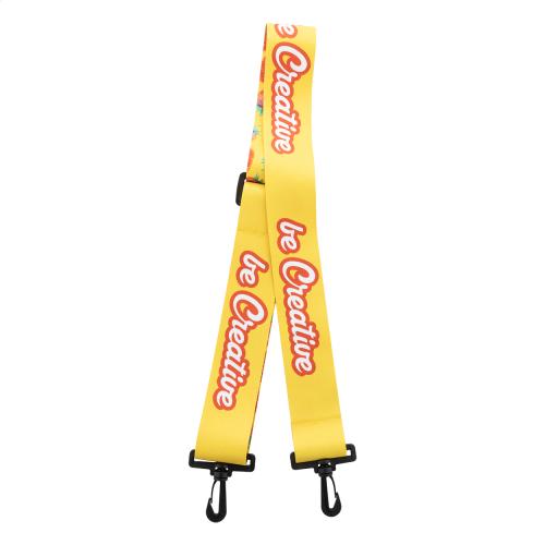 Custom made, length-adjustable polyester shoulder strap with plastic carabiners. With sublimation printed graphics on both sides. Suitable for shoulder bags, document bags, or sports bags. MOQ: 50 pcs.
