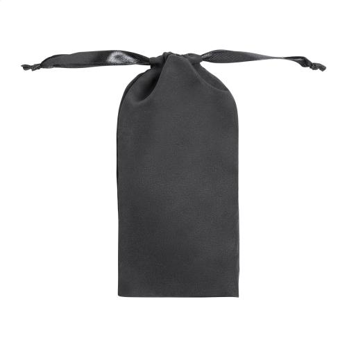 RPET polyester travel eye mask with rubber straps, in RPET drawstring pouch. With distinctive RPET label.