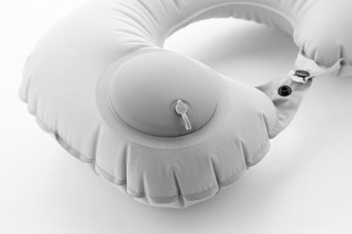 Inflatable RPET polyester travel pillow with built-in pump for easy inflation and deflation. In matching fabric drawstring pouch. With distinctive RPET label.