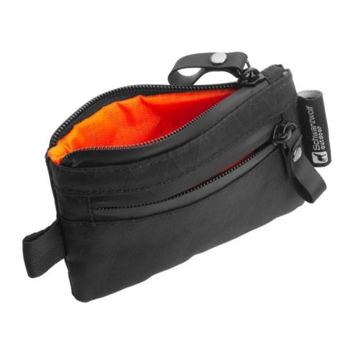 Small Schwarzwolf travel case for accessories, ID papers, money or credit cards, which you will appreciate during your activities. The case has a RFID protection and contains one main zipper pocket and a side zipper pocket. It is made of a special fabric with increased abrasion resistance and has waterproof zippers. Packed in a gift box.