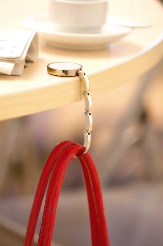 Elegant handbag holder with a segmented foldable hook for perfect adjustment.