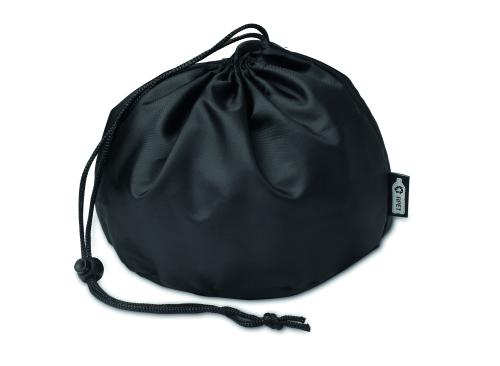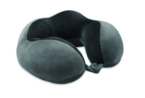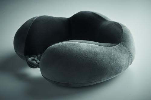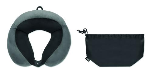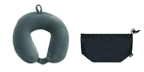 Travel pillow in foam with soft spandex. Presented with a drawcord bag in 210D polyester RPET.