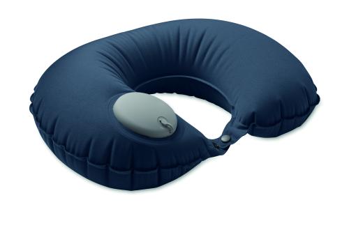 Fast inflatable pillow in milk silk fabric with built-in pump and release system. Pouch in self-material.