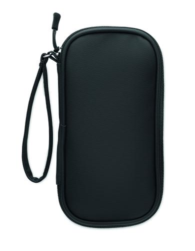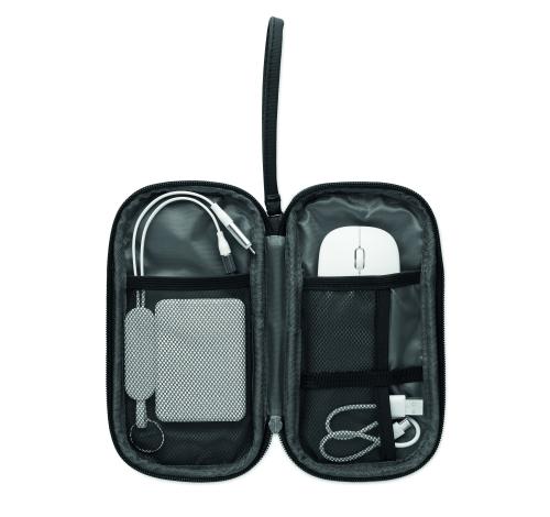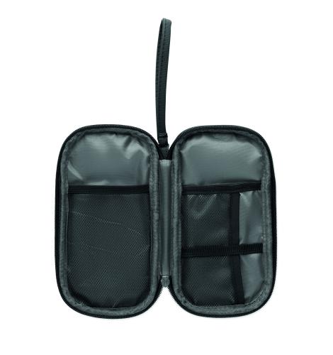 Tech organizer pouch in 600D RPET polyester with PU coating.