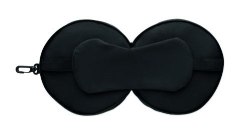 2 in 1 travel pillow with attached eye mask.