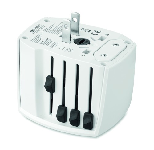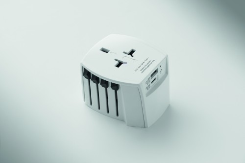 SKROSS® MUV USB — universal 2-pole travel adapter with USB-A and Type-C ports. Delivers 30W via Type-C and 18W via USB-A for fast, safe charging worldwide. Compact, powerful, and travel-ready.