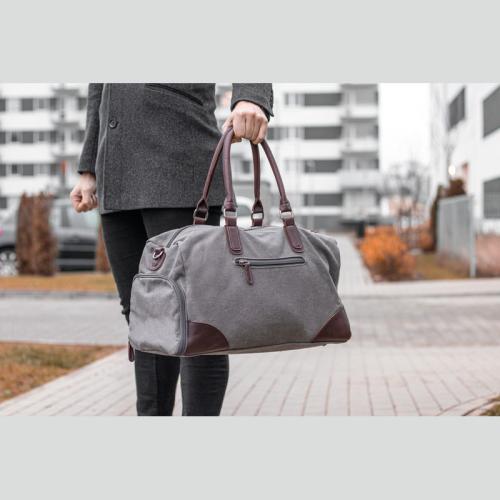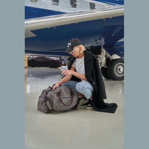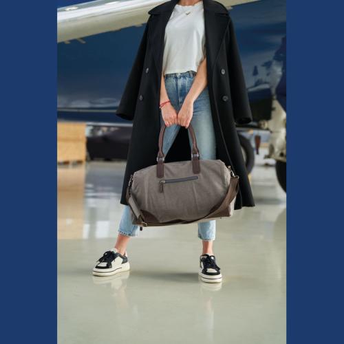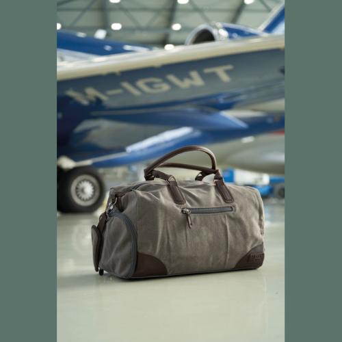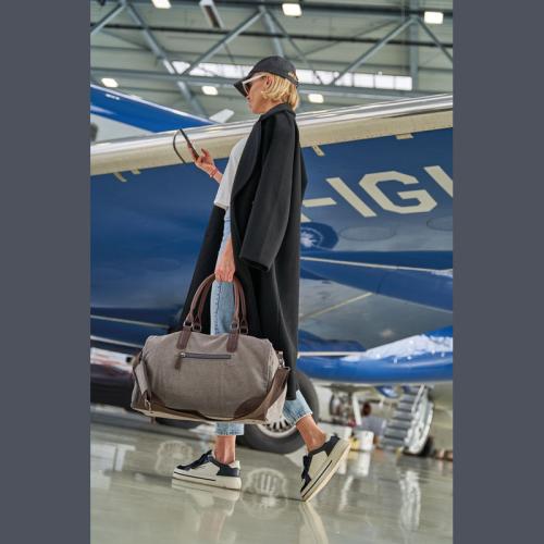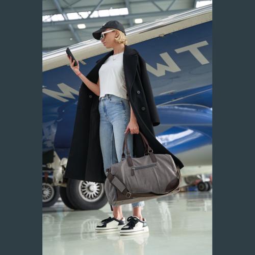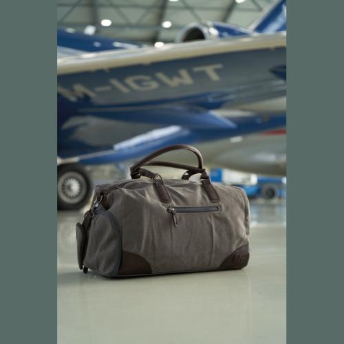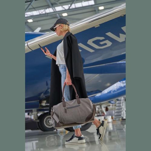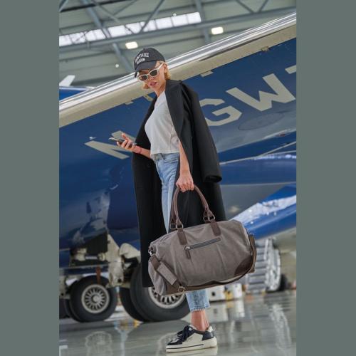 Mark Twain travel bag made of high-quality canvas with contrasting PU applications and a filling capacity of 32 liters. The shoulder strap with padding is removable. Perfect for a weekend getaway.