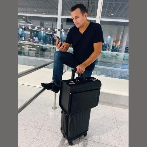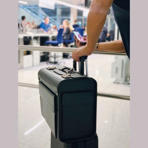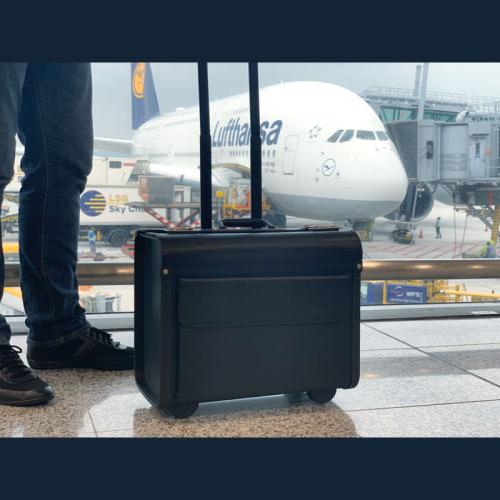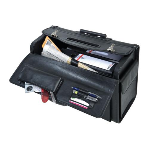 CrisMa document and pilot case trolley made of artificial leather with extra-long handle and different compartments.