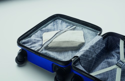 14 inch underseat luggage trolley with 4 wheels in ABS. It has an inside zippered pocket. Including a combination lock and double tube frame.