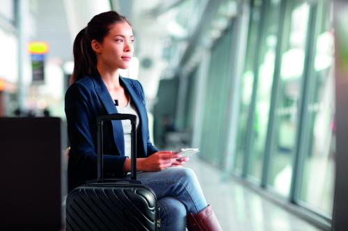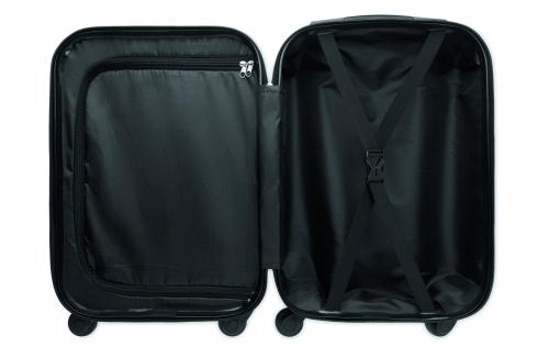 18 inch hard-shell trolley in ABS. 1 main compartment and inner compartment. Includes a security lock. Rides on 4 wheels.
