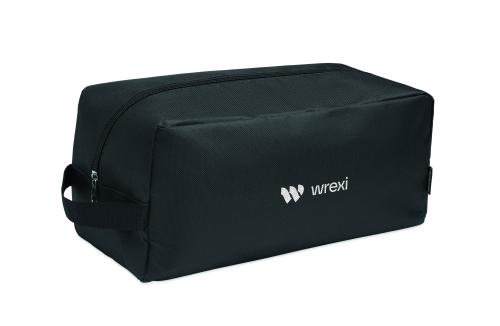 Shoe bag in 600D RPET polyester with side handle and zipper.