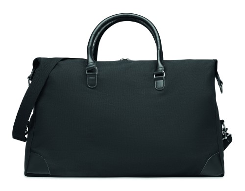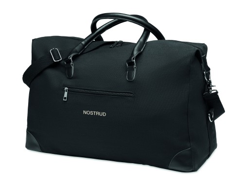 Weekend bag in 340 gr/m² canvas with recycled PU details. Lining is in RPET 210D. Strong adjustable and detachable straps included. Perfect hand luggage size.