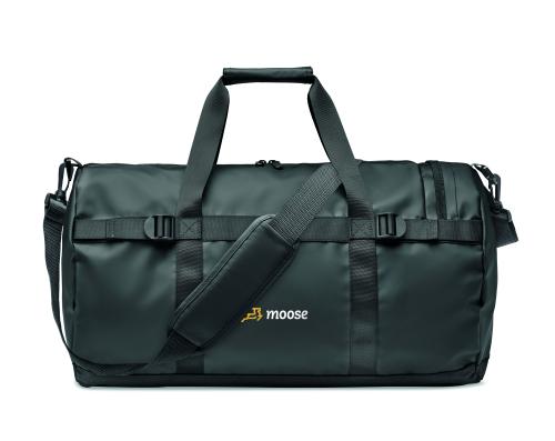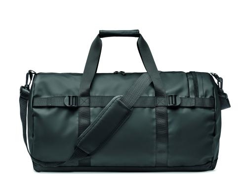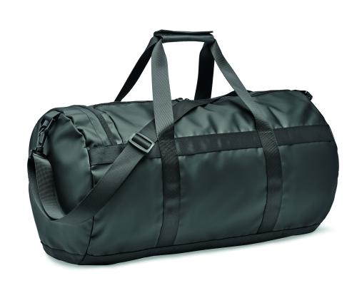 Duffle bag, sports or travel bag in 50C tarpaulin with zippered side compartment and zippered inner pocket. It has a comfort grip handle and padded base.