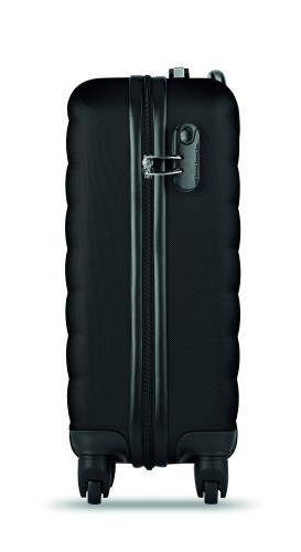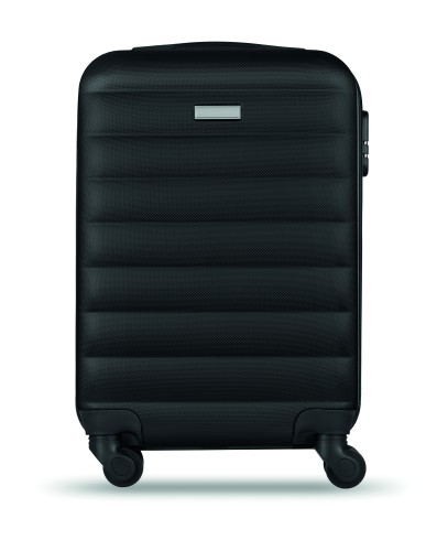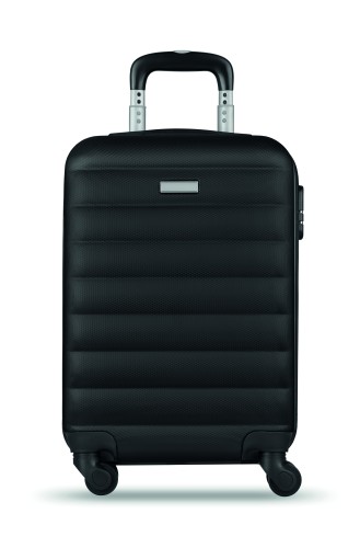 20 inch hard-shell trolley in ABS. 1 main compartment and inner compartment. Includes a security lock. Rides on 4 wheels.
