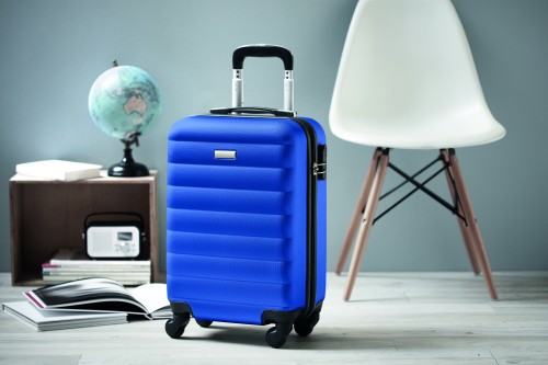 20 inch hard-shell trolley in ABS. 1 main compartment and inner compartment. Includes a security lock. Rides on 4 wheels.