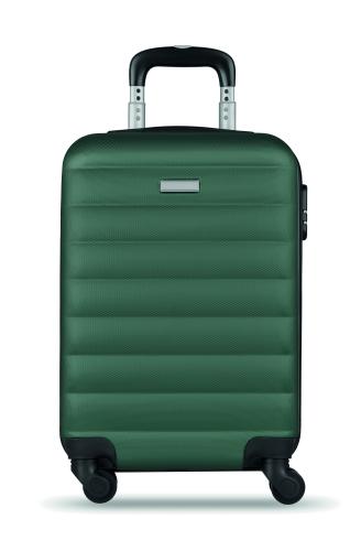 20 inch hard-shell trolley in ABS. 1 main compartment and inner compartment. Includes a security lock. Rides on 4 wheels.