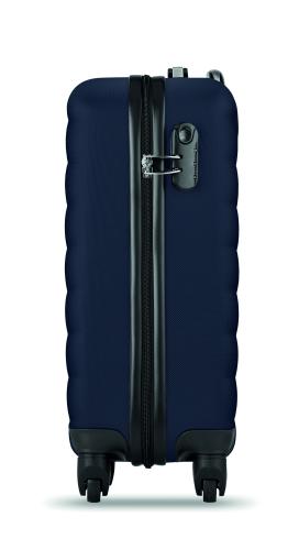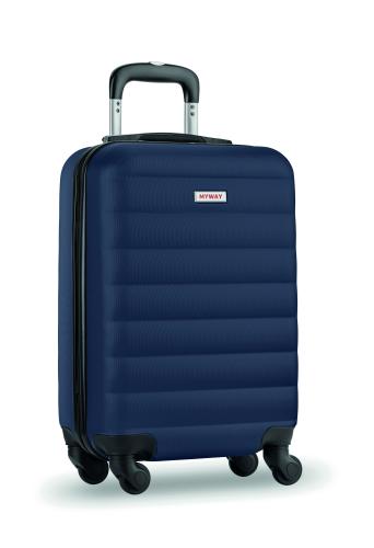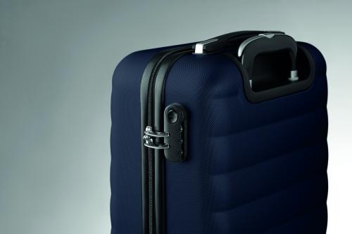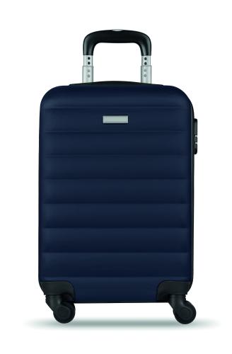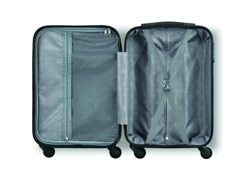 20 inch hard-shell trolley in ABS. 1 main compartment and inner compartment. Includes a security lock. Rides on 4 wheels.