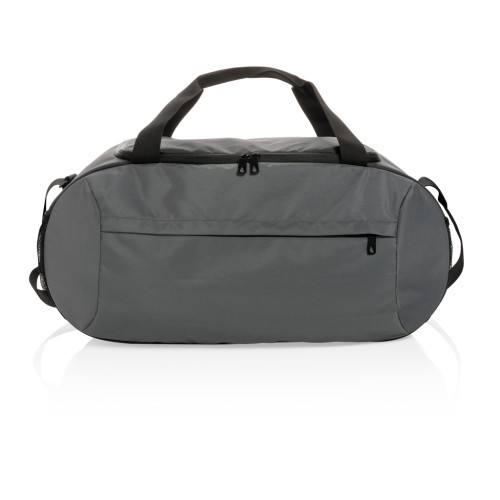 The Impact AWARE™ RPET modern sports duffle is the ideal companion for a visit to the gym or a short getaway. The bag features a clean modern design with zipper front pocket and a roomy main compartment. The duffle has straps that let you carry it any way that feels best. The backpack is made with 100% recycled polyester. With AWARE™ tracer that validates the genuine use of recycled materials. Each bag has reused 23.2 0.5L PET bottles. 2% of proceeds of each product sold containing AWARE™ will be donated to Water.org.