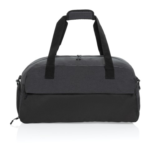 Ideal for the gym or a quick getaway, this duffle bag offers ultimate convenience. Its spacious design ensures easy access to your essentials, with a zipper front pocket for added organization. The bag adapts to your style, thanks to its versatile carrying straps. Made with 100% recycled polyester embedded with the AWARE™ tracer. 2% of proceeds of each product sold with AWARE™ will be donated to Water.org.