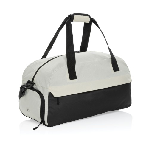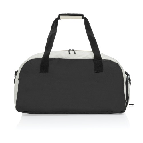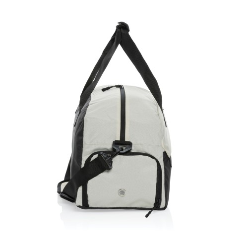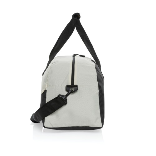 Ideal for the gym or a quick getaway, this duffle bag offers ultimate convenience. Its spacious design ensures easy access to your essentials, with a zipper front pocket for added organization. The bag adapts to your style, thanks to its versatile carrying straps. Made with 100% recycled polyester embedded with the AWARE™ tracer. 2% of proceeds of each product sold with AWARE™ will be donated to Water.org.