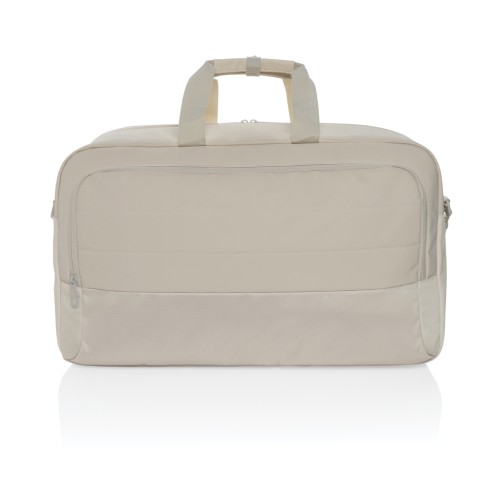 This weekend duffle impresses with its modern and simple look. Its clean design makes the duffle ideal for travel. The roomy main compartment offers plenty of space for your essentials. Made with recycled polyester embedded with the AWARE™ tracer. 2% of proceeds of each product sold with AWARE™ will be donated to Water.org. PVC free.