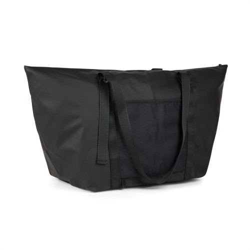 A perfect travel companion, this weekend bag is crafted from super lightweight GRS certified polyester with a sleek PU coating. Simply fold it and secure with the clever strap and buckle for storing compactly when not in use. Featuring a clever outer pocket that transforms into a secure trolley sleeve that allows you to slip it over a wheeled suitcase or trolley. Featuring adjustable straps to carry by hand or over your shoulder. Smaller inner pocket for your essentials. These versatile bags are not only easy to carry but are also designed to fold and store compactly in your luggage, providing convenient extra storage without weighing you down. Certified by GRS (Global Recycled Standard), this certification guarantees that the entire supply chain of the recycled materials is certified. The total recycled content is based on the overall product weight. This product contains 52% GRS certified recycled polyester.