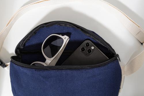 Recycled canvas waist bag with zipped compartment and adjustable strap. 70% recycled cotton and 30% recycled polyester. With distinctive recycled cotton label.