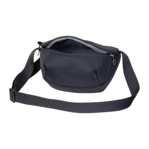 Ferraghini waist bag made of nylon with gun-metal details and black lining. Adjustable strap up to 115 cm.