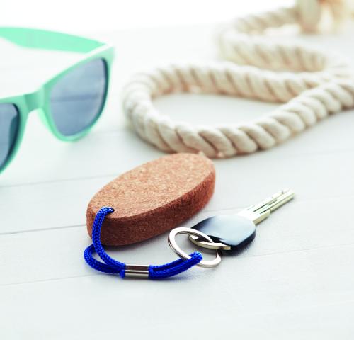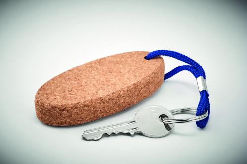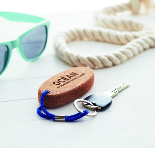 Oval floating cork key ring with braided rope. The compressed cork material will keep your keys floating safely when they accidentally drop in the water. A must-have item for people who like to spend time on the water. The braided rope with metal closing gives it a luxurious and nautical look. Cork is a natural material, due to its structural nature and surface porosity the final print result per item may have deviations. FSC 100% | N3.7 | FSC-C213206