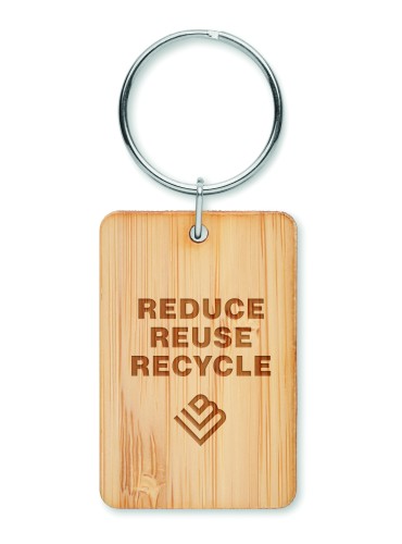 Rectangular bamboo key ring. Bamboo is a natural product, there may be slight variations in colour and size per item, which can affect the final decoration outcome.