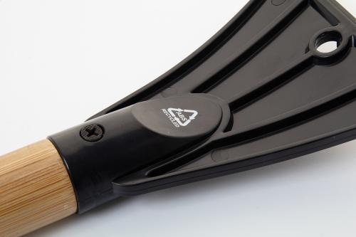Recycled ABS ice scraper with brush and bamboo handle.