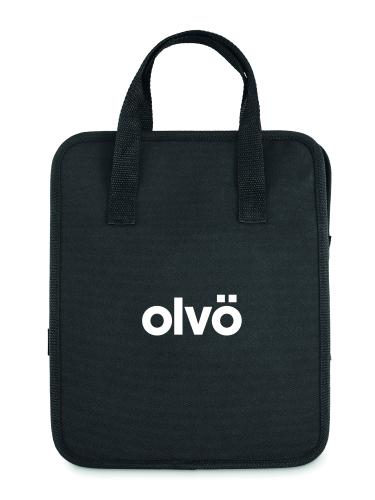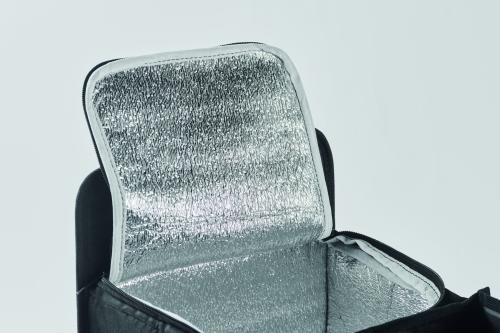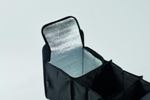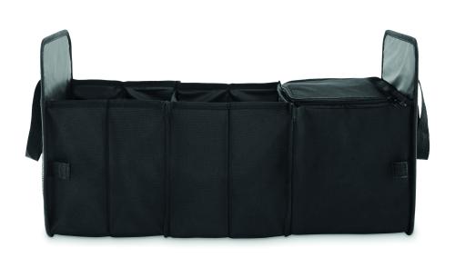 Foldable car organizer in 600D RPET polyester with 3 compartments of which one cooler compartment.