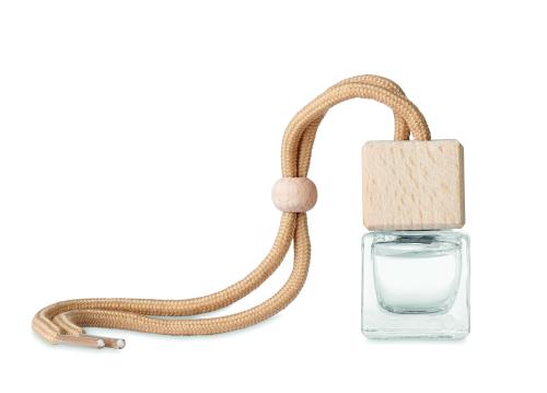 Refillable car air freshener with new car fragrance diffuser with essential oils. Glass container with beech wood lid. Capacity 5 ml.