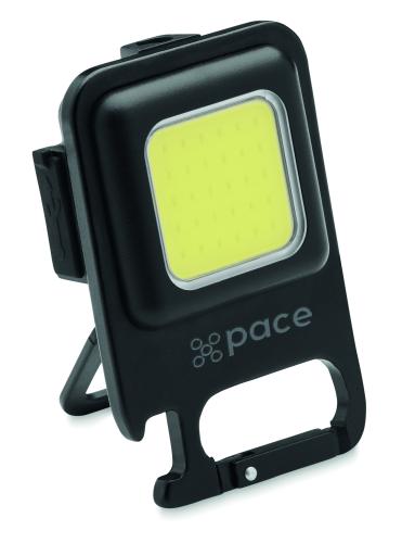 Multi functional mini torch portable 400 mAh USB rechargeable aluminium 6W COB flashlight with magnet, carbineer and bottle opener. Luminous flux: 800 lm. 3 lighting modes (high, low and flashing).