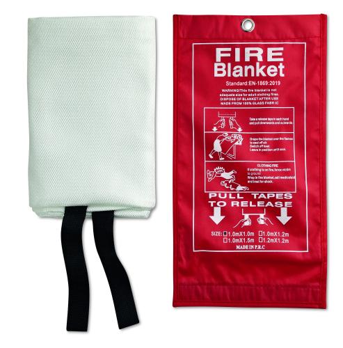 Fire blanket made of glass fibre presented in a PVC pouch. Blanket Size: 95x100 cm.