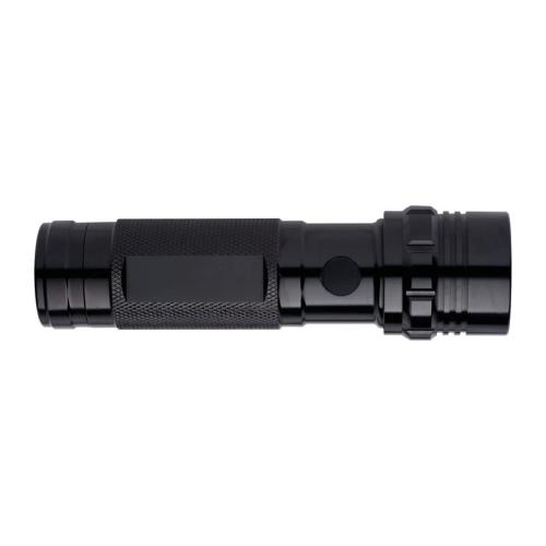 This massive metal torch with 14 LEDs and extra-bright light is comfortable to hold thanks to the chequered knob.