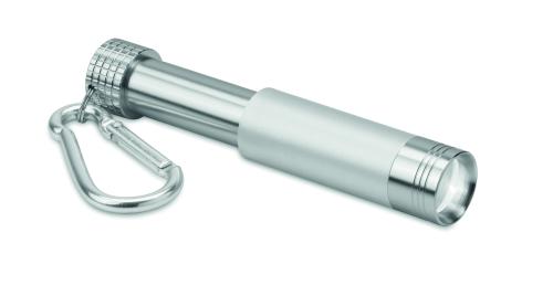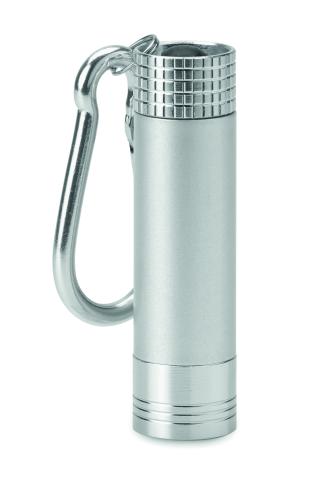 Mini aluminium and ABS LED key ring. The logo can be laser engraved and the light will illuminate the logo. 4 LR44 batteries included.