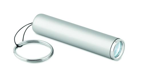 LED bulb torch in ABS with key ring. 3 AG3 batteries included. The barrel includes a LED light to illuminate the engraved logo.