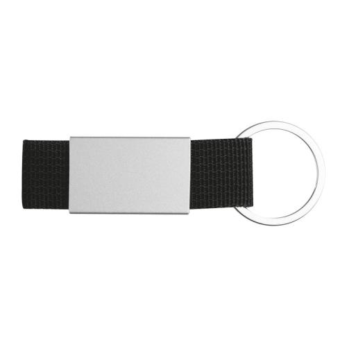 Keychain with colour ribbon and shiny metal plate.