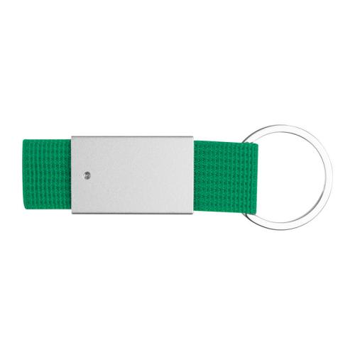 Keychain with colour ribbon and shiny metal plate.