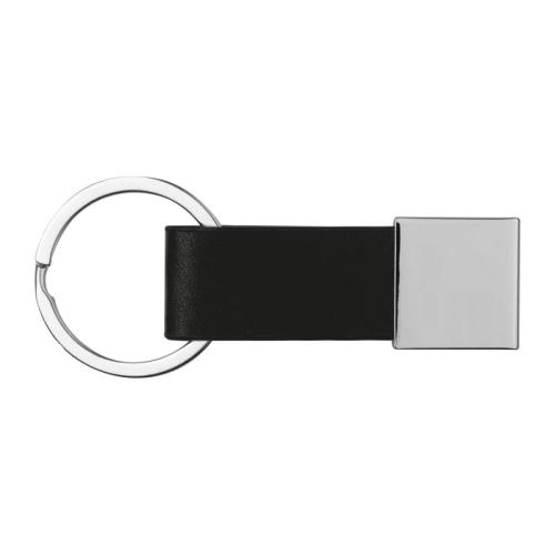 Keychain with coloured leatherette and shiny metal plate.