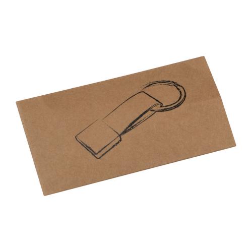 Keychain with coloured leatherette and shiny metal plate.