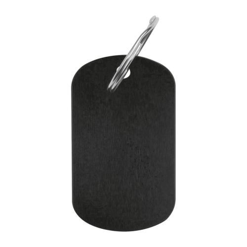 Stylish key fob made from recycled aluminium in the fashionable design of a dog tag.