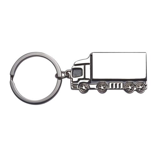 High-gloss finished metal keyring in HGV shape with black insert.