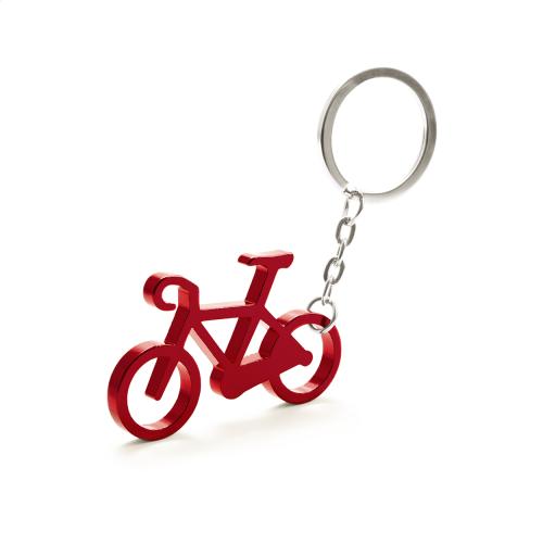 Bicycle shaped aluminium keyring with bottle opener function.