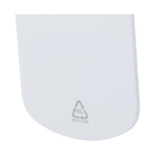 Recycled aluminium keyring with metal ring.