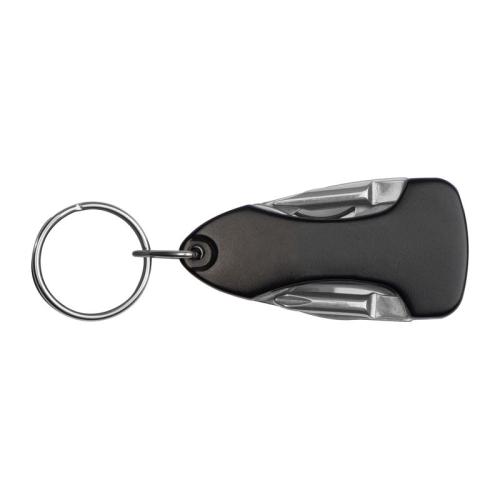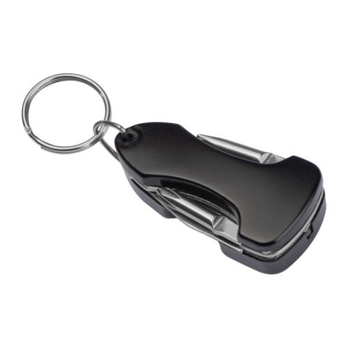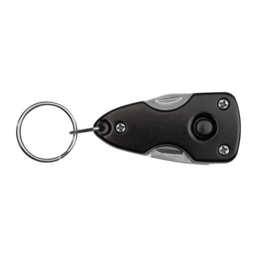 Metal Multitool with Keyring, LED-Light, Flat- and Srewdriver, Bottle Opener and Knife.