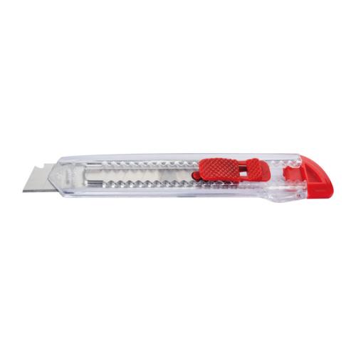 Large cutter with snap-off blade with transparent body and coloured end caps.