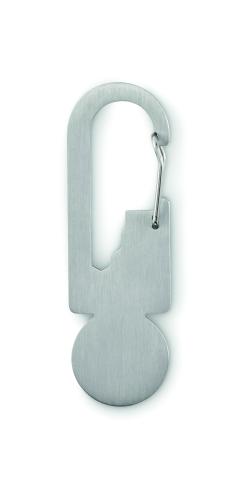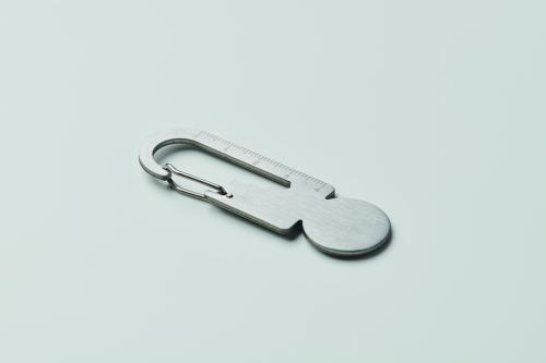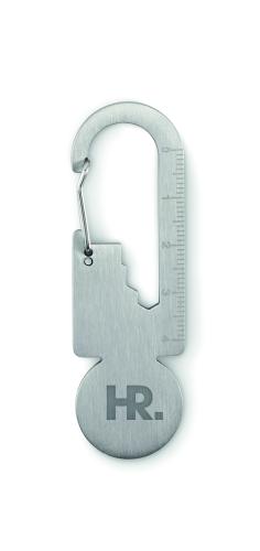 Trolley token with key ring in recycled stainless steel with multi-function tool including bottle opener, ruler and hex driver wrench (M1/M2/M3/M4).